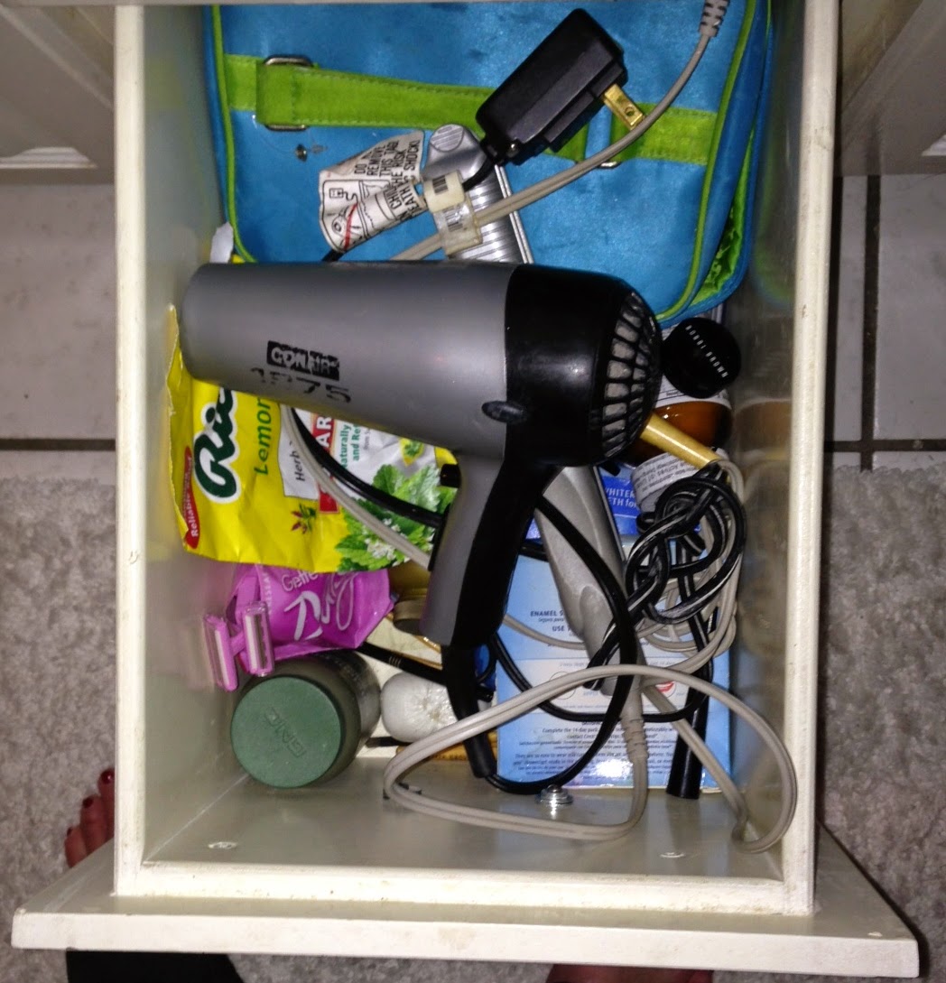 Next step: Put hair dryer and straightener in drawer (even without wrapping the cord or making it look beautiful!) – time taken: 2 seconds
